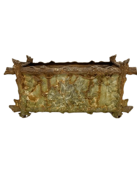 A pair of 19th century French Art Nouveaux cast iron garden urns.
