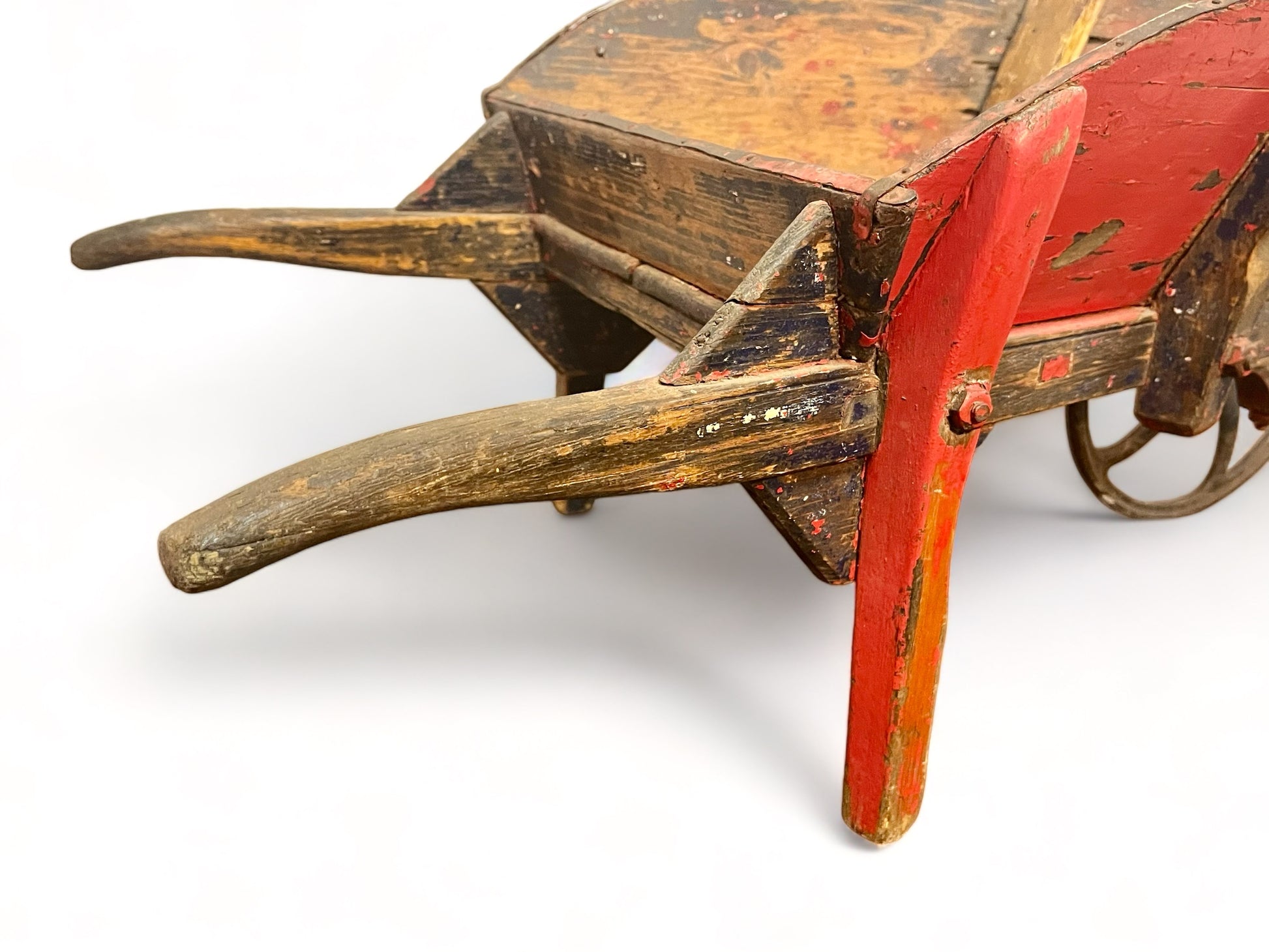 Antique 1900 Australian hand made wooden wheelbarrow with forged iron spoked wheel