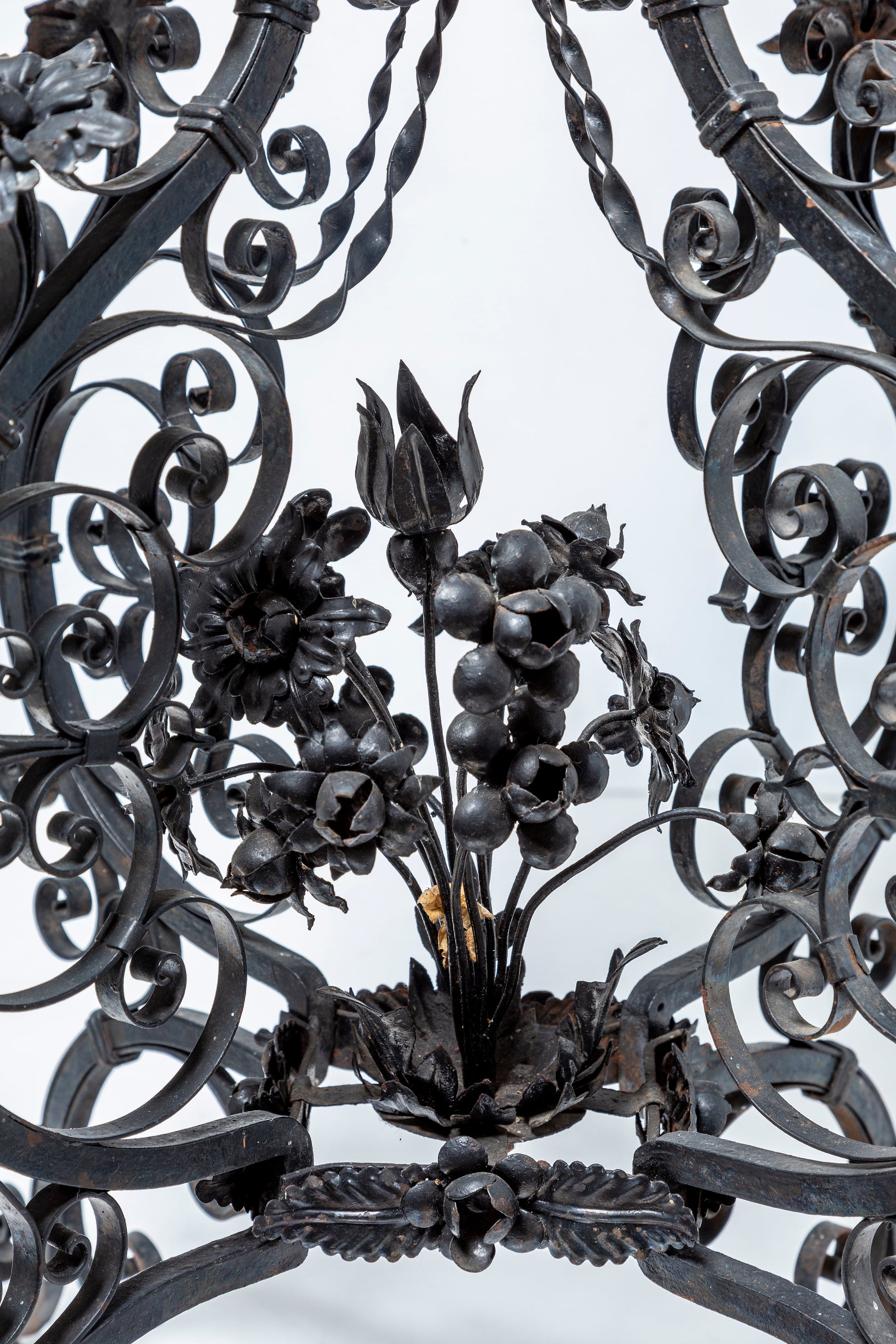The stand is supported on 4 legs, each leg is set with iron flowers and scroll pattern iron work.