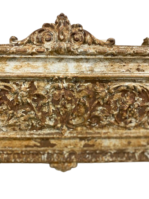 A French 19th century French cast iron garden urn, front, back and sides are decorated with cast floral and grape pattern panels.
